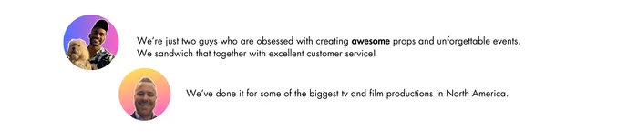 Questions about a possible rental? Want to find out how far we'll deliver in Toronto and the GTA? Looking for a special prop? Want us to build you a display or set? We're here for that! Pop us a note and we'll reply quick! We usually reply within the day! You can also just email us at [email protected] Feel free to also text or call 416-817-9125 We're here to provide the very best product and customer service to Toronto, the GTA, and Southern Ontario. We can't wait to chat!